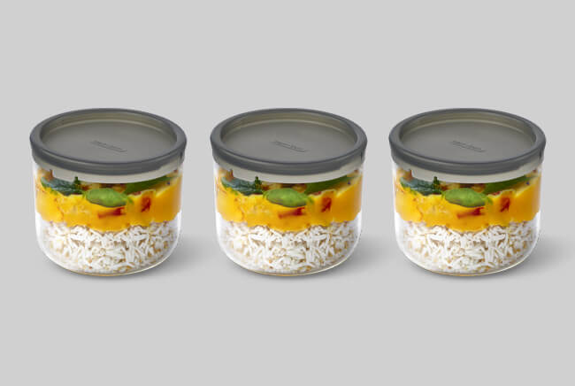 These additional glass containers make meal prep a dream. Allowing you to batch cook multiple meals and store in the fridge, they’re ready to be swapped each day - paired with the stainless steel lid and wood fibre/PP base of our Glass Lunch Pot Large.
