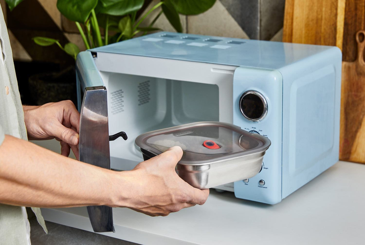 Yes, you read that right, these steel boxes are microwave-safe. We know that everyone was taught that metal cannot go in the microwave, but it’s only partly true. There are definitely some metals that should not be placed in a microwave, however, this does not include the high-quality stainless steel that we use. This type of steel, combined with the smooth and rounded shape of the steel boxes, means they will not cause sparking and are safe to use in the microwave. They adhere to extremely high safety standards and have been tested rigorously.