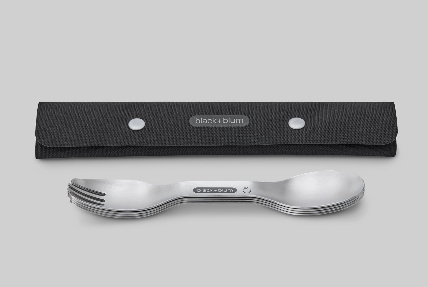 We set out to create a high-quality stainless steel spork set that’s ideal for on-the-go, whether picnicing in a park or camping up a mountain. The spork is the ultimate utensil for enjoying a variety of foods, letting you hold your plate with one hand and eat with the other. While there are plenty of sporks available, most overlook the key issue of what to do once you’re done using them. Too often, people resort to single-use, disposable cutlery because it seems easier than dealing with messy, used utensils that end up loose in a plastic bag, along with food-splattered plates. Our spork set solves that problem. It stacks neatly, and the recycled PET case makes it easy to load, while also being easy to fully open for quick, thorough cleaning. Crafted from durable yet lightweight stainless steel, the sporks feature a slight curve in the handle, which adds stiffness and comfort.